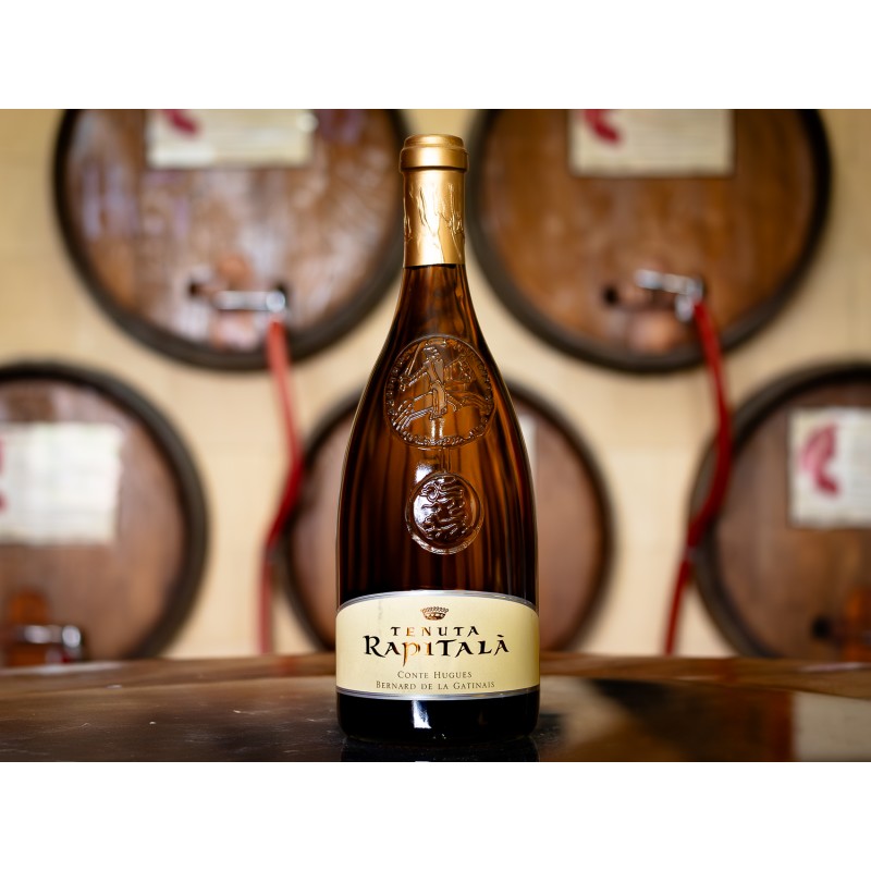 Tenuta Rapitalà Grand Cru è un gradevole vino bianco di colore giallo dorato tenue e luminoso. Al naso apre con sensazioni ampie e fruttate, tipiche del vitigno, con mela gialla, pesca e banana in evidenza, unite a lievi sbuffi salini e a toni dolci di vaniglia e burro. Il gusto è morbido e avvolgente, strutturato e ricco di ritorni di erbe aromatiche in un ampio spettro gustativo, con finale lungo e persistente su scia di succosi di agrumi di Sicilia. Ottimo abbinato a carni bianche, a crostacei, a pesce affumicato e a formaggi stagionati.