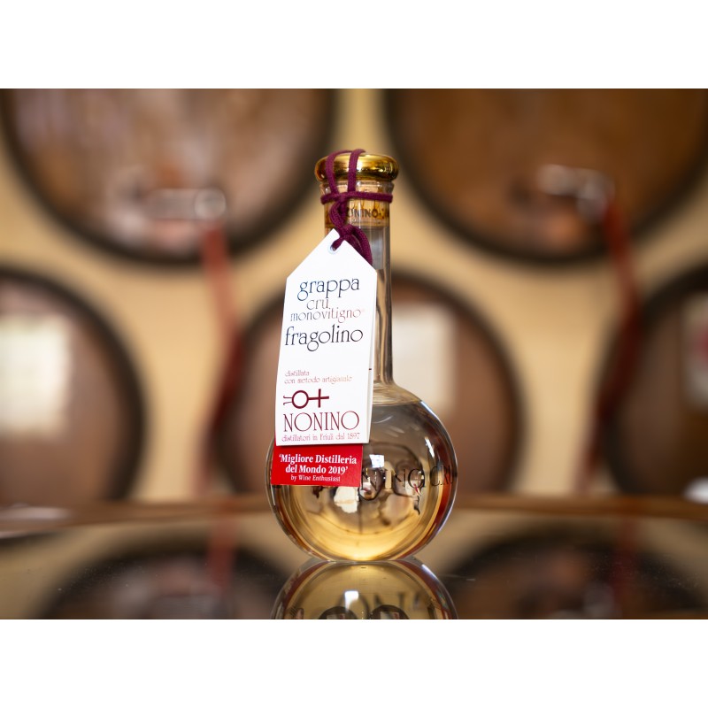 Dalla distillazione delle vinacce selezionate e diraspate, raccolte fresche e morbide, di uva Fragola Cru proveniente dalla pregiata vigna Nonino Buttrio in Friuli. La produzione di questa grappa prevede la fermentazione Sottovuoto in tini di acciaio inossidabile a temperatura controllata, seguita immediatamente dalla distillazione per evitare fermentazioni secondarie dannose. La distillazione è svolta al 100% in maniera artigianale, con il metodo discontinuo e con il taglio delle teste e delle code, in particolari esclusivi alambicchi a vapore in rame rinnovati da Benito Nonino. La distillazione avviene molto lentamente per consentire ai componenti volatili, responsabili dei profumi, una giusta evaporazione e conseguente condensazione mantenendo intatte le preziose caratteristiche organolettiche del vitigno prescelto. Poi la fase di riposo che si sviluppa per un periodo che va dai 6 mesi ad un anno in recipienti in acciaio inossidabile. Segue l’imbottigliamento manuale, in ampolle soffiate a mano volante e millesimate, con serigrafia in platino.