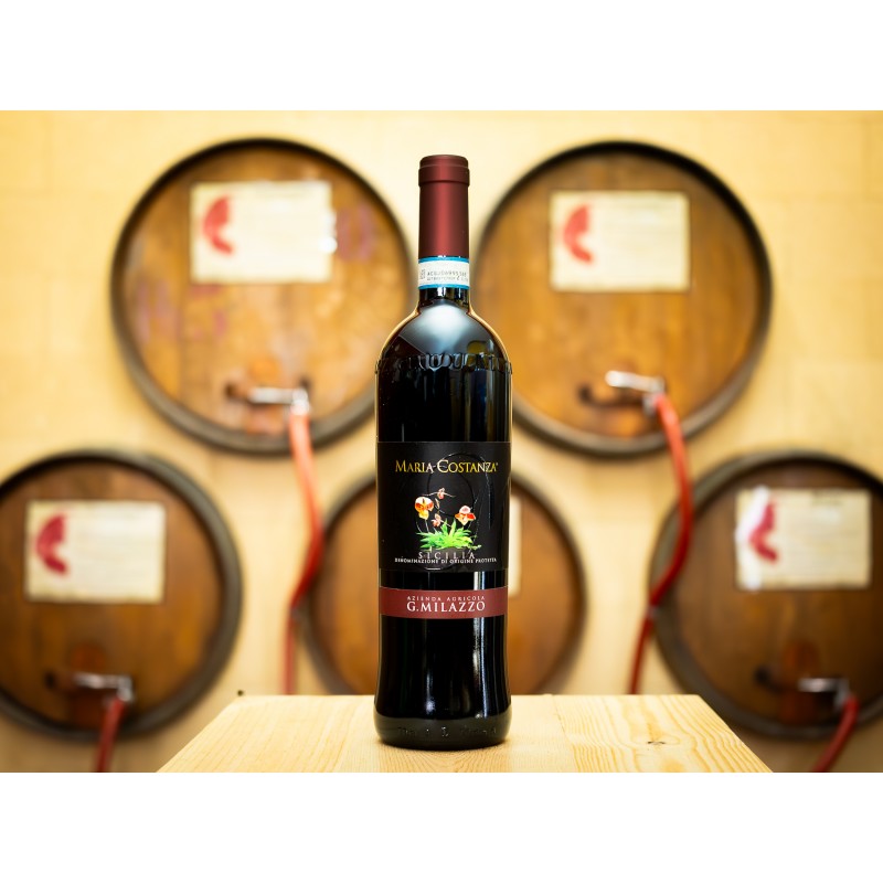 Il Rosso Maria Costanza di Milazzo è un Nero d'Avola siciliano di buona personalità dal profilo ricco, mediterraneo e caldo, come la sua terra d'origine. Effluvi di spezie dolci e incenso, sentori di piccoli frutti rossi e richiami minerali introducono un gusto morbido, vellutato e decisamente ampio.