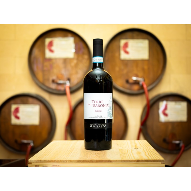 Il Terre delle Baronia si presenta di un colore rosso rubino intenso con riflessi violacei. Al naso è molto intenso e complesso, con note di frutti rossi maturi come ciliegie e prugne, accompagnate da sentori speziati di pepe nero e cannella, e un leggero sentore di vaniglia.In bocca è molto morbido e rotondo, con tannini morbidi ed equilibrati. Il gusto richiama le sensazioni olfattive, con una piacevole nota fruttata e speziata che si fonde armoniosamente con un leggero sentore di cioccolato fondente. Il finale è lungo e persistente.