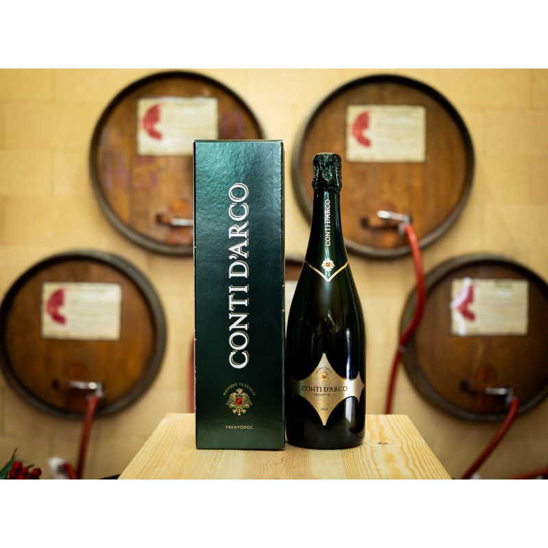 Il Trento DOC Brut Riserva Conti D’arco è uno spumante di Chardonnay, prodotto in Trentino. Affinato per 36 mesi, offre note di pera, mela e mineralità, con un perlage delicato. Perfetto con frutti di mare e come aperitivo.