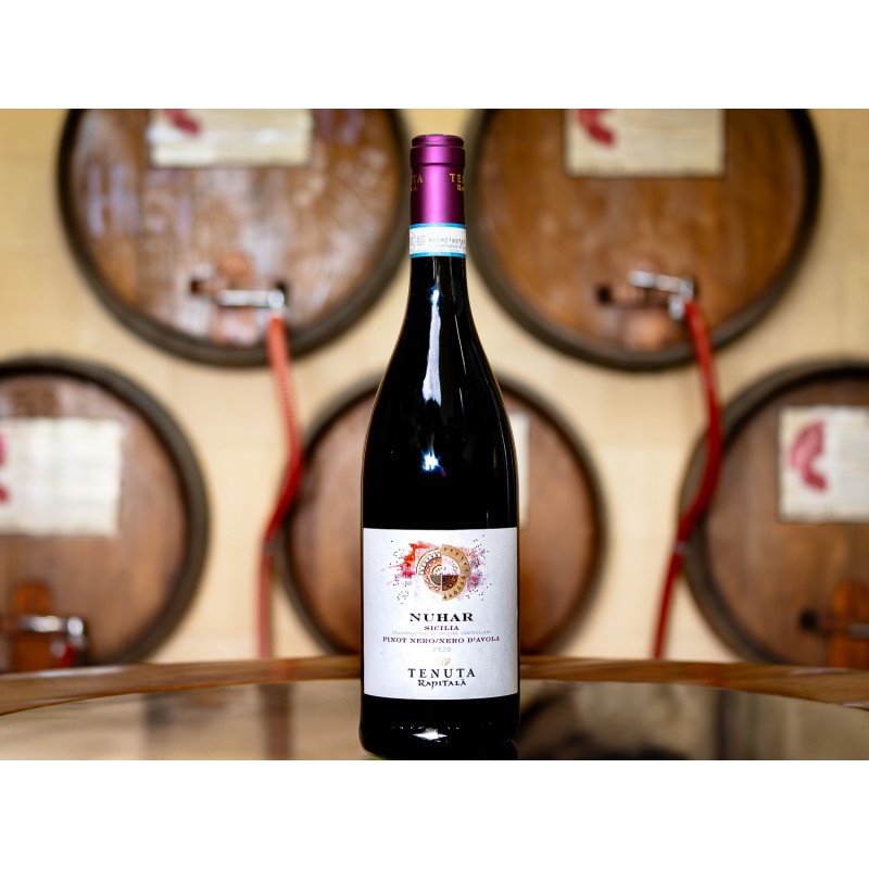 Nel cuore del monte che domina la Tenuta, sono coltivati i vigneti dove selezioniamo le uve per la produzione del Nuhar, “fiore” in arabo. Questo vino nasce dall’unione di due grandi vitigni neri, il pinot nero, re di Borgogna, che al caldo di Sicilia risponde con colore, dolcezza e spessore improbabili altrove, e il nero d‘Avola che in queste condizioni si arricchisce di tannino e corposità.